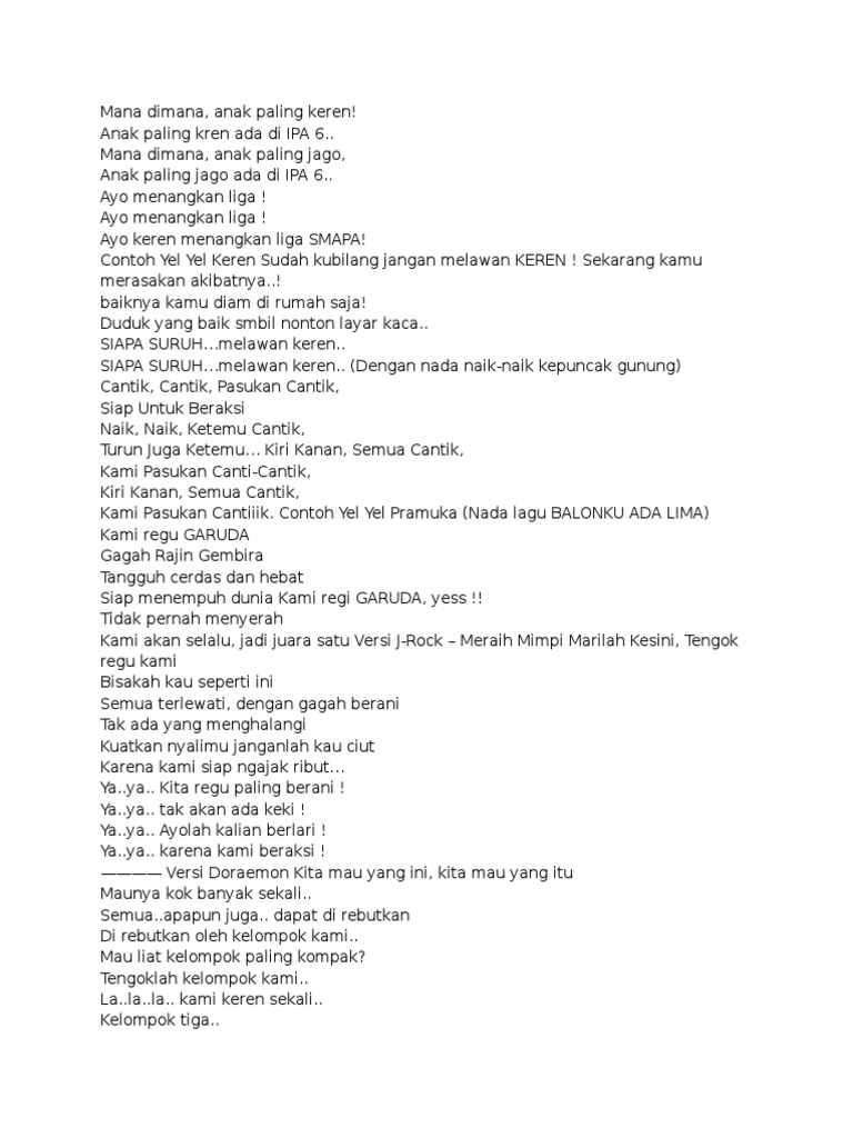 Contoh Yel Yel Pramuka Lagu Pop Simak Gambar Berikut